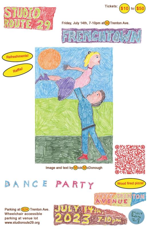 Dance party!!! July 14! This is a benefit to keep our program sliding scale/notalo forever! Come groooooove ++++ pizza and raffle and treats! Under the ArtYard outdoor tent at 50 Trenton Ave.