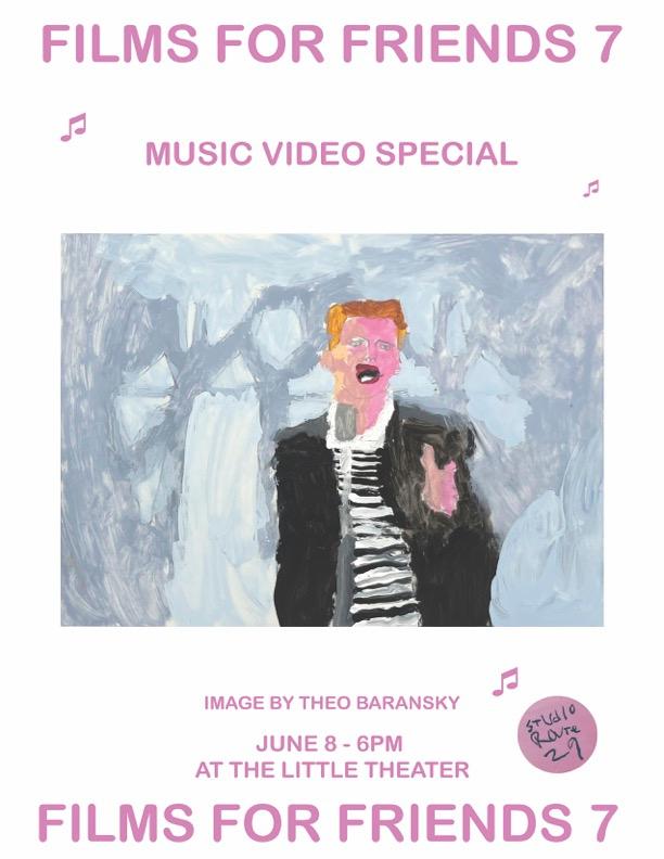 Films For Friends! Every second Thursday! This week is a music video singalong featuring new videos by Grace Husek and Jeff Bill. Rick Astley posters by Theo Baransky will be for sale at the event. See you there. 6pm doors, 630 show.
