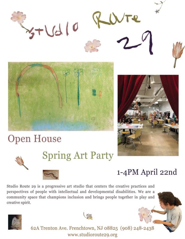 This Saturday! After the autism walk/roll in town, we’re hosting an open house art party. Come draw, paint, or collage a still life with flowers donated by Flemington Floral Company and locally foraged blooms. Bring a special flower to draw or just your blooming self! Join us from 1-4 PM—open to all.