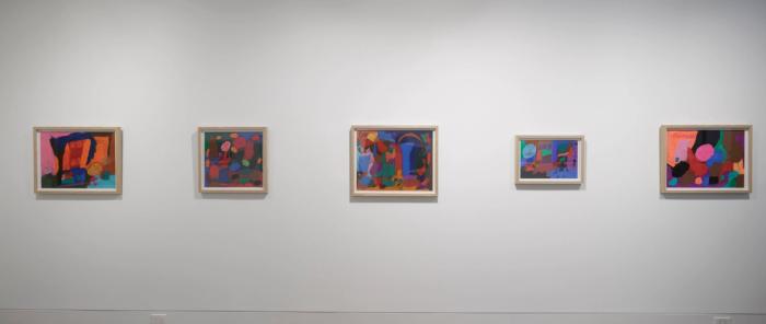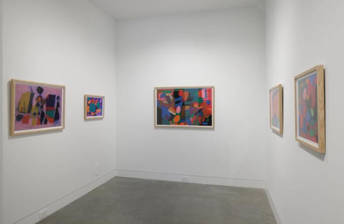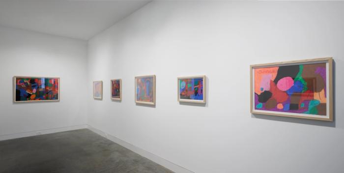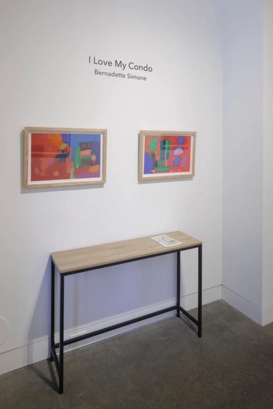 In highly chromatic depictions of the condominium she lives in, surrounded by friends, flowers, music, and trees, Bernadette Simone coalesces her most cherished spaces, feelings, and ways of living into repeated symbols, all rendered in the glow of “forever” (a tense that's very important to her). The radiance of her thickly applied pastels lends these scenes a playful joyousness - days are fair, food is good, friends love us, and shining song and color wash over it all.